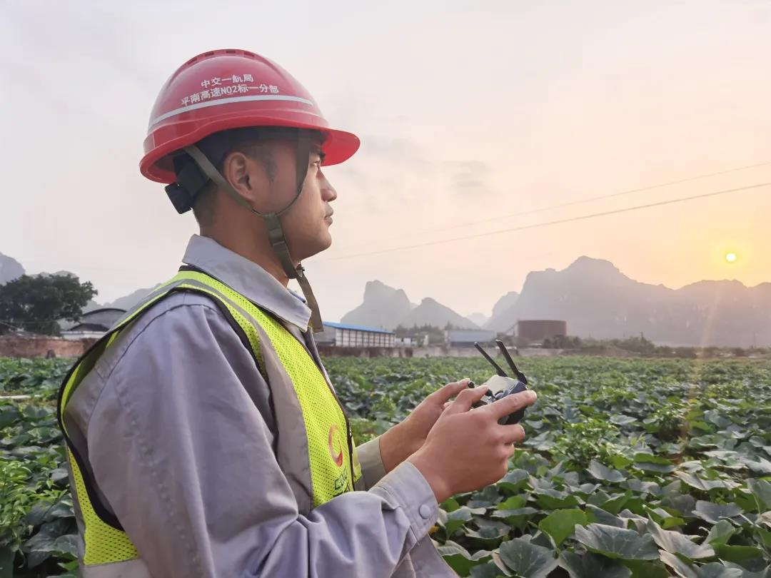 在重巒疊嶂的(de)山谷丘壑之間,一架測繪無人(ren)機(ji)正在有規律地(di)飛(fei)行。山腳下,朱(zhu)鋒(feng)緊盯(ding)屏幕,小(xiao)心(xin)翼翼地(di)操縱著手(shou)里的(de)搖桿,不時跟同事核對圖紙參數。朱(zhu)鋒(feng)是(shi)中交(jiao)集團所屬中交(jiao)一航(hang)局總承(cheng)包分公司廣西平南高速項目的(de)測量隊長(chang),他正在用新型無人(ren)機(ji)傾(qing)斜攝影測量技(ji)術勘(kan)察(cha)現場(chang)地(di)形。