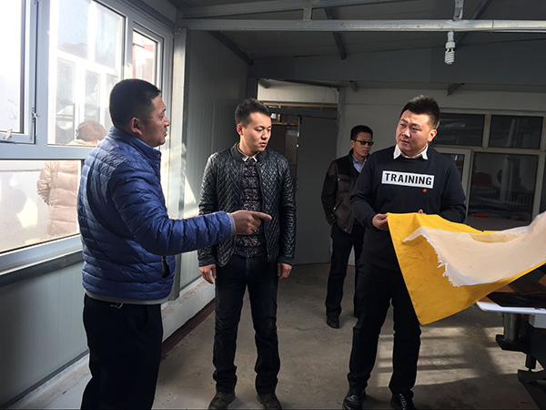 呂帥(右)與中鐵十九(jiu)局(ju)扶貧領導小組到當地服飾加工廠實地考(kao)察