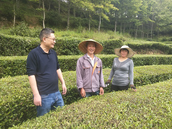 程迎春查看吳承火夫婦經營的茶園