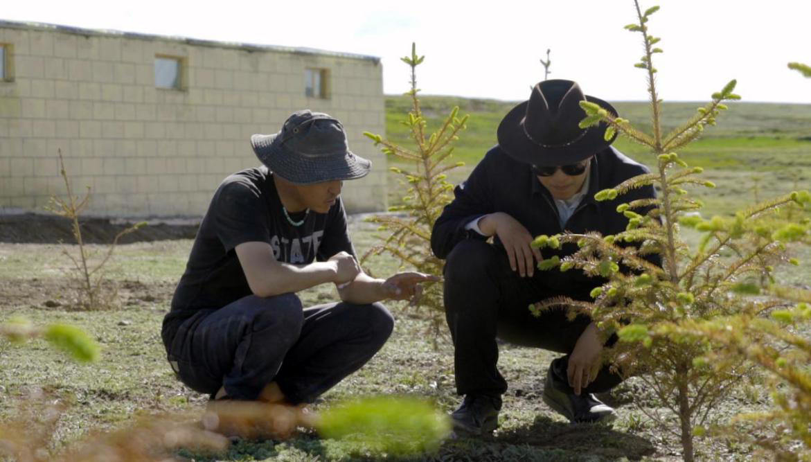 圖為王銳與曲麻萊縣群眾研究分析種樹情況