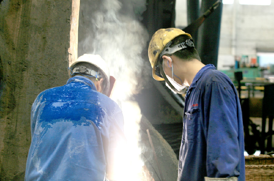 鑄鍛公司清理職工對氣缸進行補焊作業
