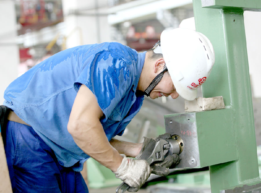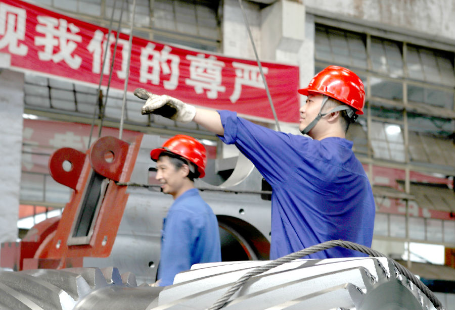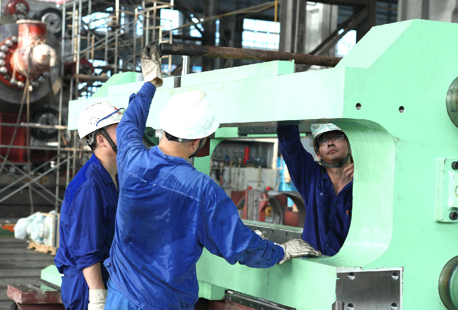 重機公司裝配職工在裝配內蒙古赤峰850軋機
