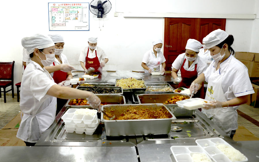 萬安公司配餐職工為集團公司生產一線職工分裝加班盒飯