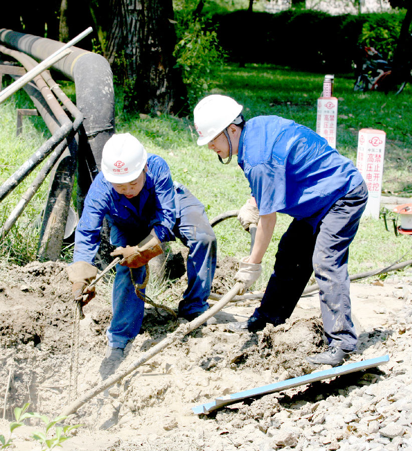 動能公司維修職工在高溫下搶修爆裂的壓縮空氣管道,保障生產運行