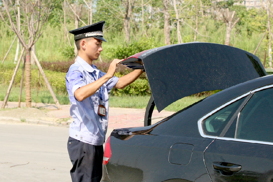 企業安全與環境部內保人員在烈日下對進出廠車輛進行檢查