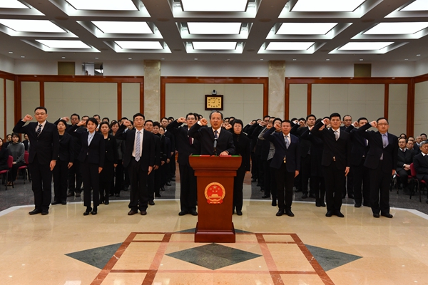郝鵬監誓(shi)后講話強調,要始(shi)終忠于憲法(fa),永遠(yuan)銘記誓(shi)言,始(shi)終不忘初心、牢記使命,模范履職(zhi)盡責、擔當(dang)作為,充分發揮表(biao)(biao)率(lv)帶(dai)頭作用。要強化(hua)政治(zhi)責任,在“兩個(ge)維護”上作表(biao)(biao)率(lv);弘揚(yang)憲法(fa)精神,在依法(fa)監管上作表(biao)(biao)率(lv);堅(jian)持真(zhen)抓(zhua)實干,在擔當(dang)作為上作表(biao)(biao)率(lv);永葆政治(zhi)本色,在廉潔自律上作表(biao)(biao)率(lv),滿腔熱(re)忱地投(tou)身(shen)國資(zi)國企事業發展,為決勝全面建成(cheng)小康社(she)會、實現“兩個(ge)一(yi)百年”奮(fen)斗目標和中華(hua)民族偉大(da)復興中國夢作出新的更(geng)大(da)貢獻(xian)。