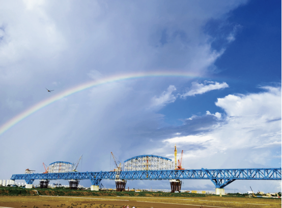 中國中鐵六局承建的南沙港鐵路洪奇瀝水道特大橋。