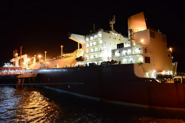 LNG輪“莎格蘭”依偎在江蘇LNG碼頭卸貨