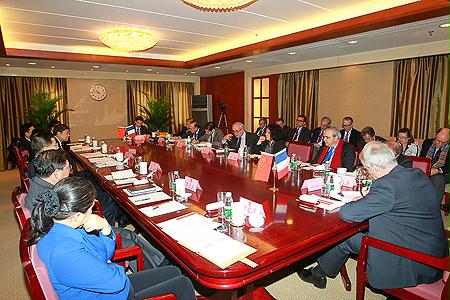 徐福順副(fu)主任首先歡(huan)迎(ying)拉法(fa)(fa)蘭先生(sheng)來(lai)訪,并感謝拉法(fa)(fa)蘭先生(sheng)和法(fa)(fa)國(guo)(guo)企業(ye)家為中(zhong)法(fa)(fa)友誼作出的貢(gong)獻。徐福順副(fu)主任介紹(shao)了中(zhong)國(guo)(guo)國(guo)(guo)有企業(ye)改革、改組(zu)、發展的基(ji)(ji)本(ben)情況,中(zhong)央企業(ye)未(wei)來(lai)布局(ju)結(jie)構調整的基(ji)(ji)本(ben)思(si)路以(yi)及中(zhong)國(guo)(guo)企業(ye)國(guo)(guo)際化經營的情況。