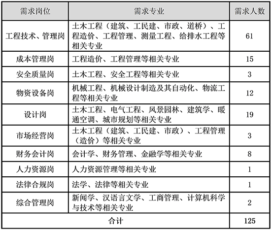 根據公司規劃發展需(xu)求,現對中國通號建(jian)設集團部分崗位進行(xing)公開校園招聘,具(ju)體招聘崗位及需(xu)求如下: