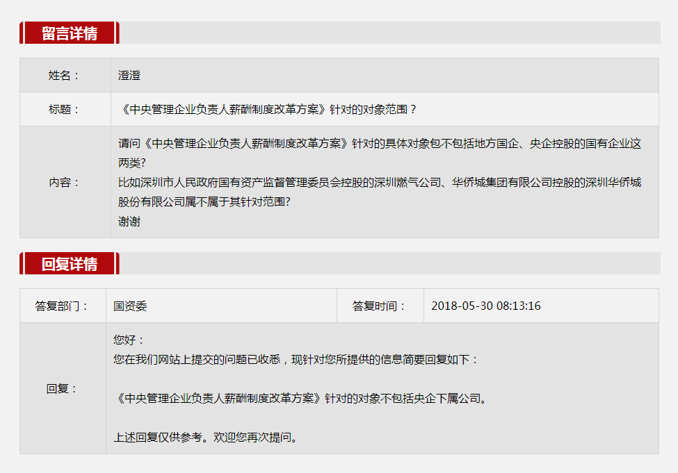去年6月國務院國資委網站改版以來,針對網友在政務咨詢欄目提出的一些問題,國資委網站初步做出了認真的回應,先后回答各類問題600余條,解疑釋惑,獲得了網友的認同和信任。從2018年第二季度起,國資委網站編輯部從每季度的回復中,選擇五條關注度高、點擊量高的問題,再次推薦分享。這里有你關心的話題,快來看看廣大網友用鍵盤推出的熱門話題吧。