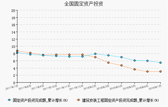 2018年(nian)7月全(quan)國固(gu)定(ding)資(zi)(zi)產投資(zi)(zi)累計增(zeng)速增(zeng)長5.5%,其中建筑安(an)裝(zhuang)工程投資(zi)(zi)累計增(zeng)速增(zeng)長3%。 圖 4:全(quan)國固(gu)定(ding)資(zi)(zi)產投資(zi)(zi)情況(kuang)