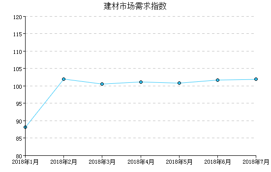 2018年7月(yue),建(jian)材(cai)市場需求指數(shu)為101.90,比上月(yue)增(zeng)加0.20,比去年同月(yue)減少3.91。