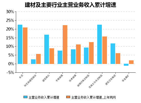 圖 8:建材及主(zhu)要(yao)行(xing)業主(zhu)營業務收入累計增速