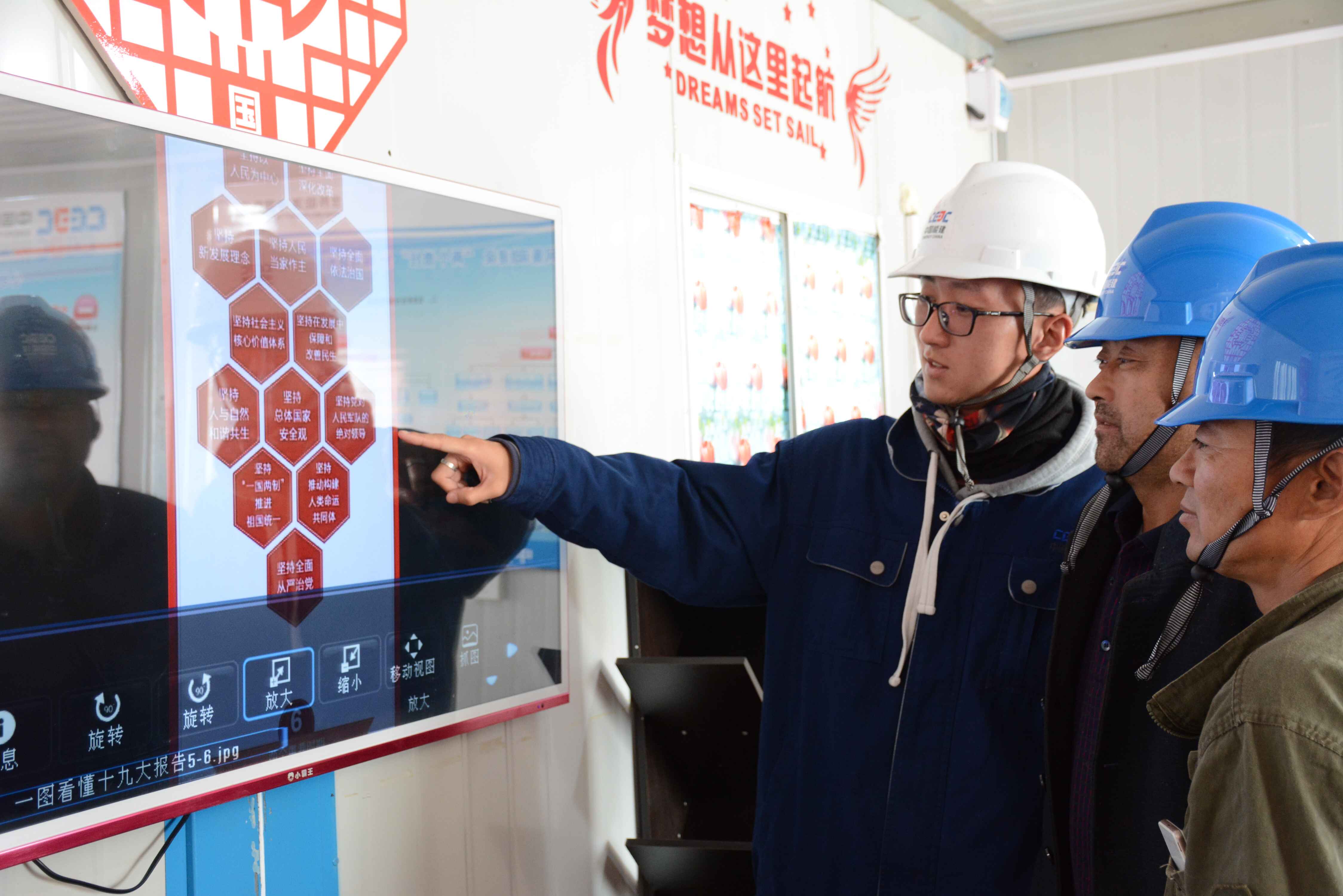 技(ji)術員張蒙蒙在黨員活動室內(nei)為工友(you)講(jiang)黨的十(shi)九大報告