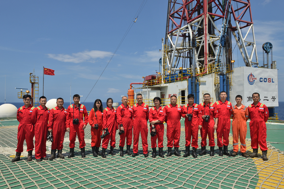 “奮斗者2019‘視覺(jue)新國(guo)企(qi)’攝(she)影(ying)(ying)展”線(xian)下攝(she)影(ying)(ying)采風團抵(di)達(da)“南海(hai)二(er)號(hao)”鉆(zhan)井平臺。(宮瑞卿 攝(she))