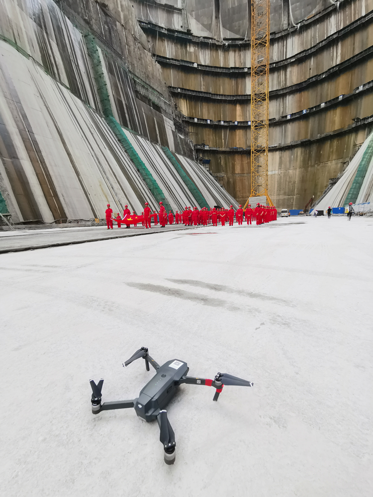 在(zai)烏東德水電站(zhan)大壩基坑內,等待起飛的無人機 攝影(ying)/劉海草