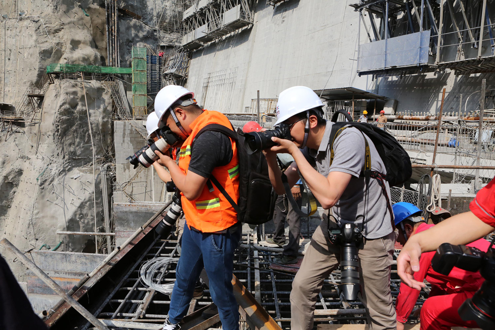 攝影(ying)師們在(zai)烏東(dong)德水(shui)電站二道(dao)壩施工現場(chang)進行創(chuang)作 攝影(ying)/趙彤