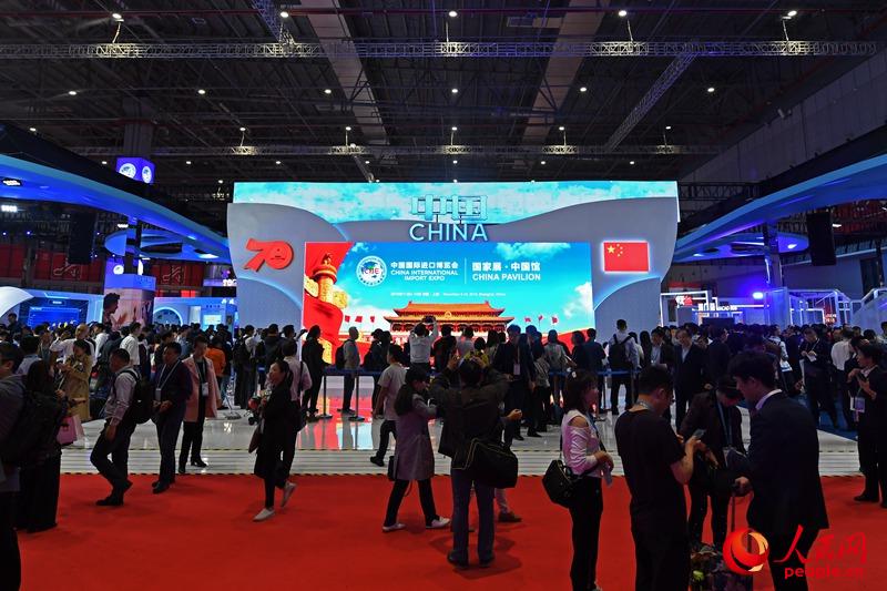 11月6日(ri),在第二屆進(jin)博會國家展(zhan)中(zhong),藍白色調的中(zhong)國館(guan)堪稱最吸睛(jing)的展(zhan)區,人氣爆(bao)棚。(人民網記者 翁奇羽 攝)