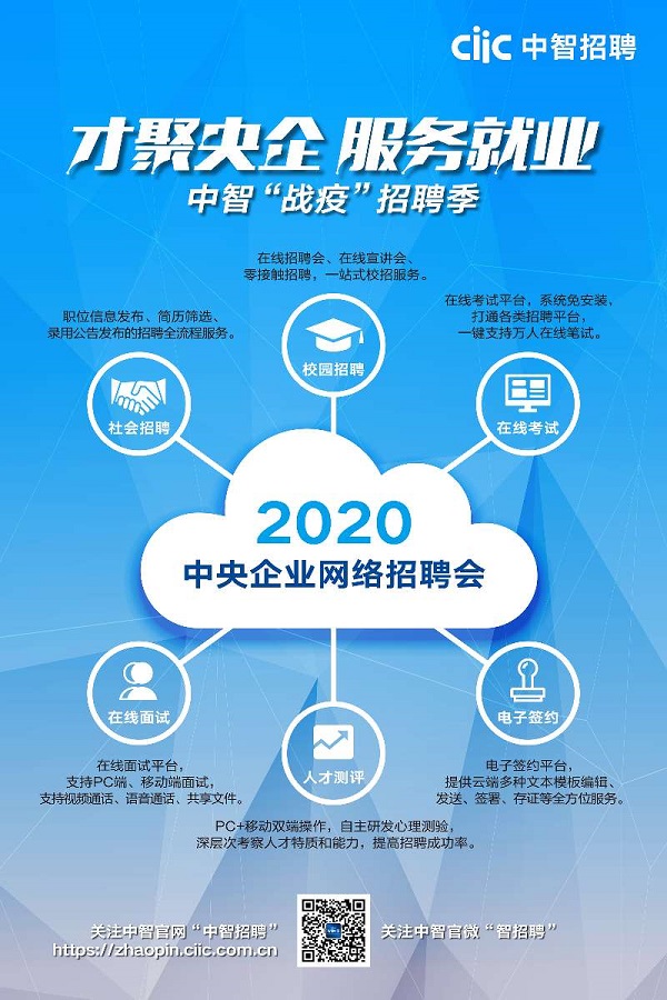 中(zhong)智作(zuo)為一(yi)家主(zhu)營人(ren)力資(zi)源(yuan)及智力服(fu)務(wu)的(de)(de)(de)中(zhong)央企(qi)(qi)業(ye)(ye)(ye),為做(zuo)好疫(yi)(yi)情防控下的(de)(de)(de)人(ren)才招(zhao)(zhao)(zhao)聘(pin)(pin)工作(zuo),服(fu)務(wu)穩就業(ye)(ye)(ye)、穩預期的(de)(de)(de)工作(zuo)大局(ju),主(zhu)動(dong)(dong)作(zuo)為、充分發揮行業(ye)(ye)(ye)優勢、積(ji)極履行央企(qi)(qi)社(she)會(hui)責任,依(yi)托自(zi)身(shen)在(zai)招(zhao)(zhao)(zhao)聘(pin)(pin)服(fu)務(wu)方面(mian)(mian)的(de)(de)(de)獨特優勢,全力跟進落實(shi)國(guo)資(zi)委提(ti)出的(de)(de)(de)“保障企(qi)(qi)業(ye)(ye)(ye)用(yong)人(ren)需求、促進生(sheng)產恢復、保障和改善民生(sheng)、穩定(ding)就業(ye)(ye)(ye)”的(de)(de)(de)有關要(yao)求,聯合全國(guo)各地(di)知名高校和國(guo)務(wu)院(yuan)國(guo)資(zi)委所屬各中(zhong)央企(qi)(qi)業(ye)(ye)(ye),舉(ju)辦“才聚央企(qi)(qi),服(fu)務(wu)就業(ye)(ye)(ye),中(zhong)智戰(zhan)疫(yi)(yi)招(zhao)(zhao)(zhao)聘(pin)(pin)季”專項招(zhao)(zhao)(zhao)聘(pin)(pin)活動(dong)(dong)。活動(dong)(dong)致(zhi)力于為各中(zhong)央企(qi)(qi)業(ye)(ye)(ye)提(ti)供“定(ding)制化(hua)、顆粒化(hua)、一(yi)體化(hua)”的(de)(de)(de)全流程線(xian)(xian)上(shang)招(zhao)(zhao)(zhao)聘(pin)(pin)服(fu)務(wu),實(shi)現“信息(xi)發布—簡歷(li)收集—簡歷(li)篩選—在(zai)線(xian)(xian)筆(bi)試(shi)、在(zai)線(xian)(xian)面(mian)(mian)試(shi)、在(zai)線(xian)(xian)測評—錄用(yong)公告(gao)發布—電子(zi)簽約”的(de)(de)(de)全流程線(xian)(xian)上(shang)招(zhao)(zhao)(zhao)聘(pin)(pin)服(fu)務(wu)。線(xian)(xian)上(shang)招(zhao)(zhao)(zhao)聘(pin)(pin)服(fu)務(wu)集成“社(she)會(hui)招(zhao)(zhao)(zhao)聘(pin)(pin)、校園(yuan)招(zhao)(zhao)(zhao)聘(pin)(pin)、在(zai)線(xian)(xian)考試(shi)、在(zai)線(xian)(xian)面(mian)(mian)試(shi)、人(ren)才測評、電子(zi)簽約”等模塊功能的(de)(de)(de)一(yi)體化(hua)布局(ju),使企(qi)(qi)業(ye)(ye)(ye)、求職者足不(bu)出戶(hu)即可滿足雙(shuang)方的(de)(de)(de)用(yong)工、求職需求。