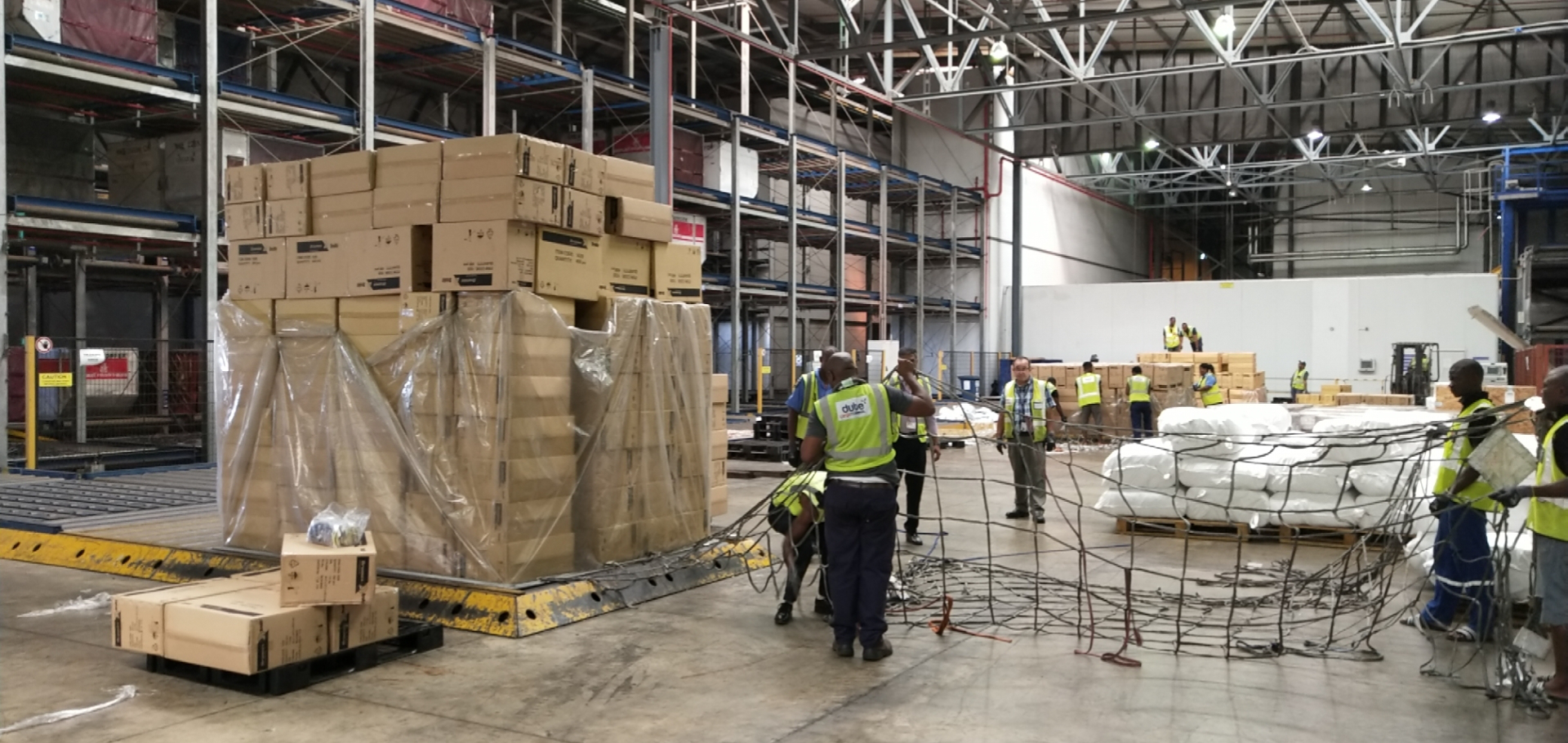 通過國網電商公司電商交易平臺采購的防疫物資正從南非德班市打包運往廣東。央企電商聯盟/供圖