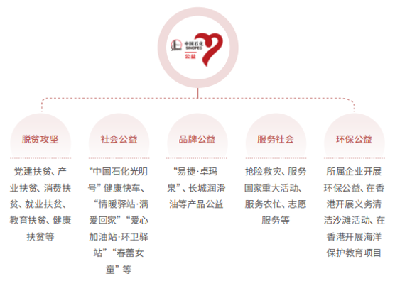 作為中央企業,中國石化堅持將發展成果與社會共享,投身公益慈善事業,回應社會期望,展示負責任的企業形象。經過多年發展,公司形成以脫貧攻堅、社會公益、品牌公益、服務社會、環保公益為核心的五大社會貢獻領域,致力于解民生之憂,謀民生之利,增強人民群眾的幸福感、獲得感,為社會發展進步注入“石化力量”。