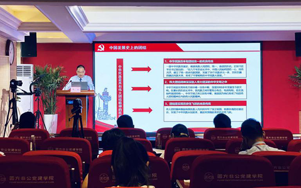 為(wei)期(qi)3天的(de)培訓內容(rong)豐富、形式多樣,不僅包括以《弘揚(yang)偉大團結精(jing)(jing)神 建設講團結、會團結的(de)黨(dang)(dang)(dang)(dang)員干部(bu)隊伍(wu)》為(wei)題的(de)黨(dang)(dang)(dang)(dang)委書記講黨(dang)(dang)(dang)(dang)課、《中國共(gong)產黨(dang)(dang)(dang)(dang)國有(you)企(qi)業基層(ceng)組織工作條例(試行)》解讀、《發展黨(dang)(dang)(dang)(dang)員工作流程》等基層(ceng)黨(dang)(dang)(dang)(dang)務工作培訓內容(rong),還安(an)排了特色黨(dang)(dang)(dang)(dang)課《弘揚(yang)勞動精(jing)(jing)神 爭當出彩(cai)先(xian)鋒》、觀看愛國影片、參(can)觀圓方非公黨(dang)(dang)(dang)(dang)建教(jiao)育(yu)基地等現場教(jiao)學活動。