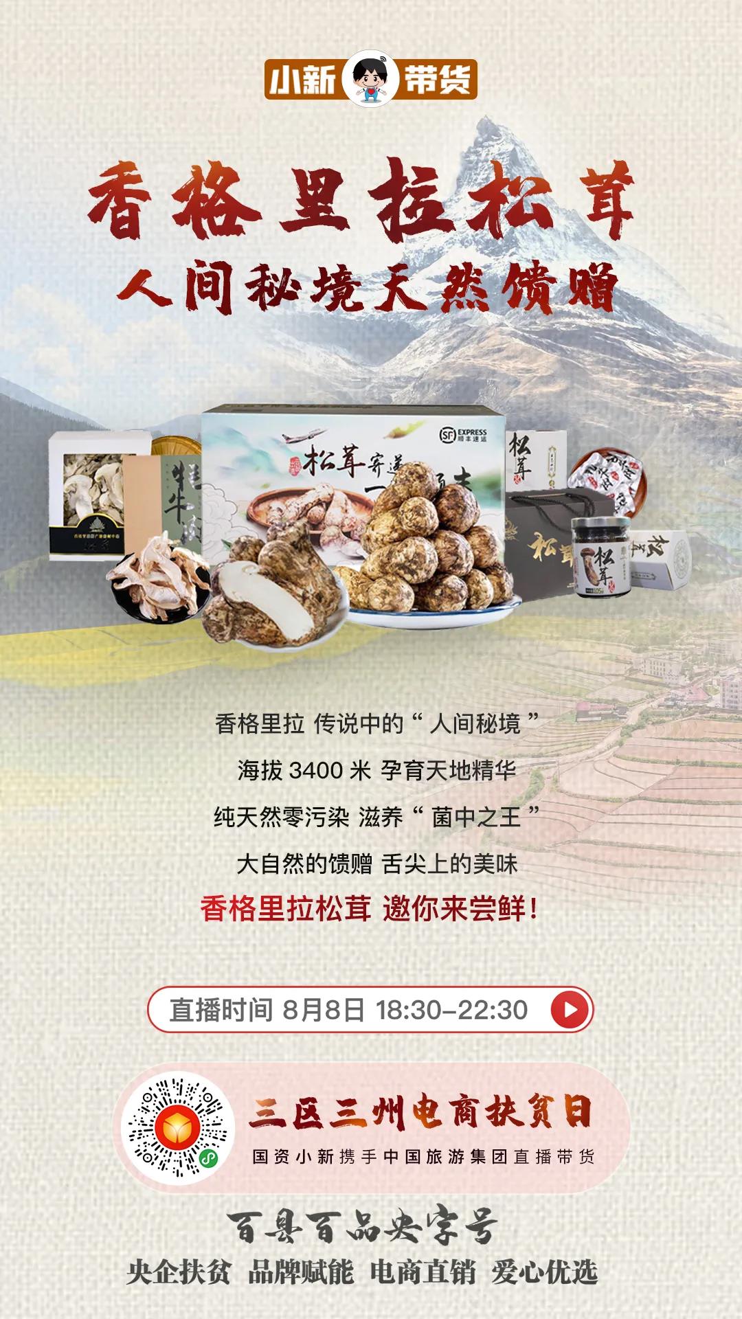 2018年以來,中(zhong)(zhong)(zhong)國旅(lv)(lv)游(you)(you)集(ji)(ji)團(tuan)在幫(bang)扶的(de)云南(nan)迪慶(qing)州香(xiang)(xiang)格(ge)(ge)里拉(la)(la)市創(chuang)新(xin)性提(ti)出旅(lv)(lv)游(you)(you)線(xian)路扶貧模(mo)式,將(jiang)香(xiang)(xiang)格(ge)(ge)里拉(la)(la)諸多品牌資源與(yu)自身全產(chan)業鏈要素立體嫁(jia)接,開發“時光之禮”香(xiang)(xiang)格(ge)(ge)里拉(la)(la)旅(lv)(lv)游(you)(you)扶貧路線(xian),更注資1500萬元成(cheng)立中(zhong)(zhong)(zhong)國旅(lv)(lv)游(you)(you)集(ji)(ji)團(tuan)迪慶(qing)香(xiang)(xiang)格(ge)(ge)里拉(la)(la)旅(lv)(lv)游(you)(you)投資發展有限公(gong)司,將(jiang)大香(xiang)(xiang)格(ge)(ge)里拉(la)(la)地區打造(zao)為世界級旅(lv)(lv)游(you)(you)目的(de)地。香(xiang)(xiang)格(ge)(ge)里拉(la)(la)作為中(zhong)(zhong)(zhong)國松茸主產(chan)區,因品質(zhi)上乘(cheng),30年來一直都是出口冠軍。這次中(zhong)(zhong)(zhong)國旅(lv)(lv)游(you)(you)集(ji)(ji)團(tuan)在直播間向(xiang)網(wang)友推介的(de)就是香(xiang)(xiang)格(ge)(ge)里拉(la)(la)森林里孕育(yu)的(de)松茸,肉質(zhi)細嫩、久香(xiang)(xiang)味濃(nong)。