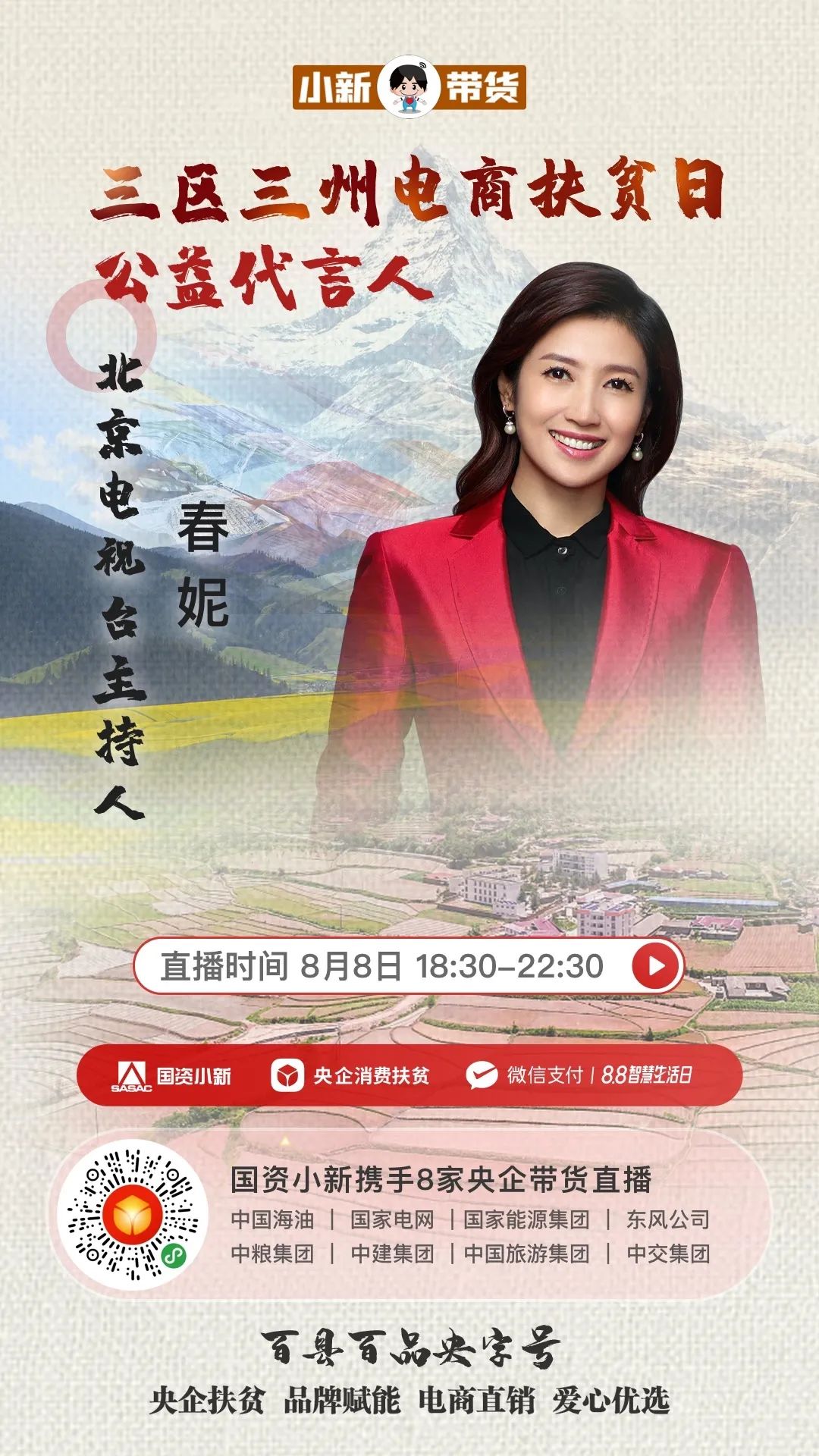 8月(yue)8日18:30,“百縣百品央字號(hao)”暨(ji)“小新帶貨”融媒(mei)體扶貧行動將(jiang)走進(jin)“三(san)區三(san)州”,迎(ying)來(lai)首場專(zhuan)題(ti)直播。