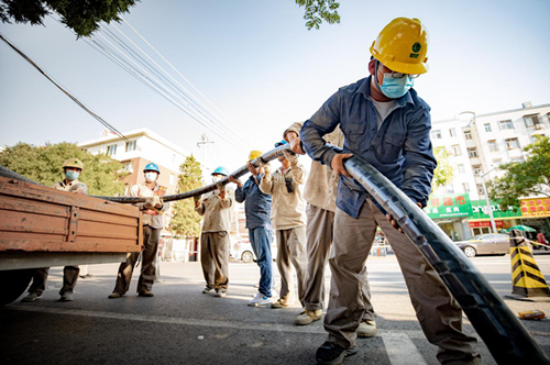 國網四川綿陽供電公司員工在城區敷設地下電纜,暴曬后的電纜表面溫度達60℃。