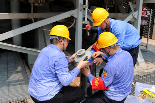 國網河北電力檢修公司特高壓邢臺站值班員在烈日下更換1000千伏臺泉Ⅰ線高壓并聯電抗器呼吸器硅膠。