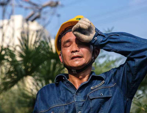 國網安徽宿州供電公司員工處理樹障近兩小時,汗水模糊了眼睛。