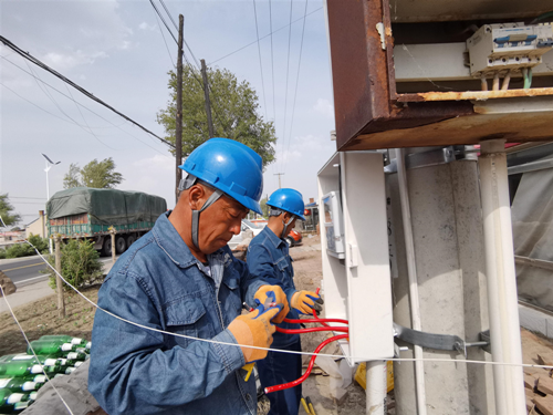 國網山西運城供電公司共產黨員服務隊深入田間地頭檢查設備運行狀況。