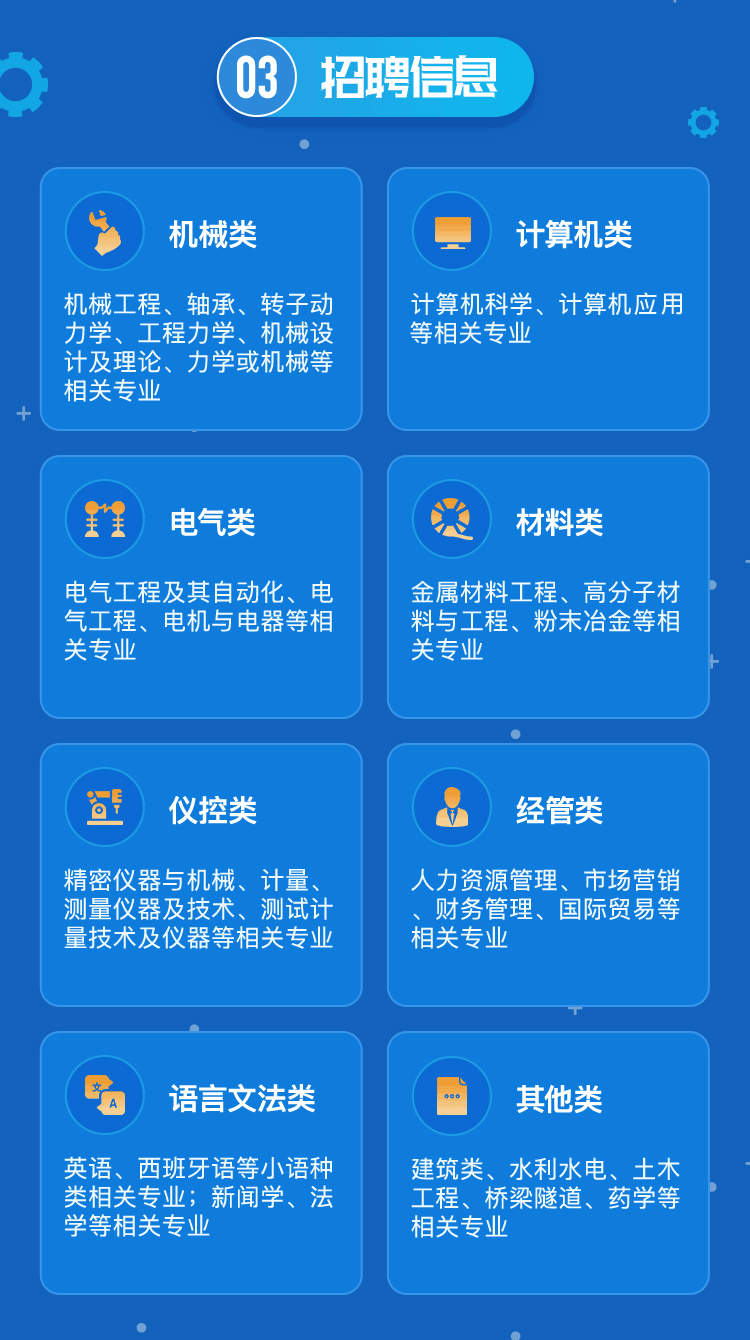 國(guo)機(ji)(ji)集(ji)團面向(xiang)企(qi)業未來發展需(xu)要,積(ji)極響應“六(liu)穩”、“六(liu)保”工(gong)作(zuo)精神,深挖用人潛力(li),以實際行動(dong)(dong)助力(li)應屆畢業生(sheng)就業,全面啟(qi)動(dong)(dong)2021校園招聘。本次校招涉及下屬(shu)74家成(cheng)員企(qi)業,提(ti)供3000多個工(gong)作(zuo)崗(gang)位,涉及機(ji)(ji)械(xie)類、計算機(ji)(ji)類、電(dian)器類、材(cai)料類等多個專業,工(gong)作(zuo)地點覆蓋全國(guo)各大中城市。國(guo)機(ji)(ji)集(ji)團將為優秀高校畢業生(sheng)提(ti)供成(cheng)長(chang)成(cheng)才的舞臺(tai),讓(rang)我(wo)們共同(tong)建設世界一流企(qi)業,振興中國(guo)機(ji)(ji)械(xie)工(gong)業!