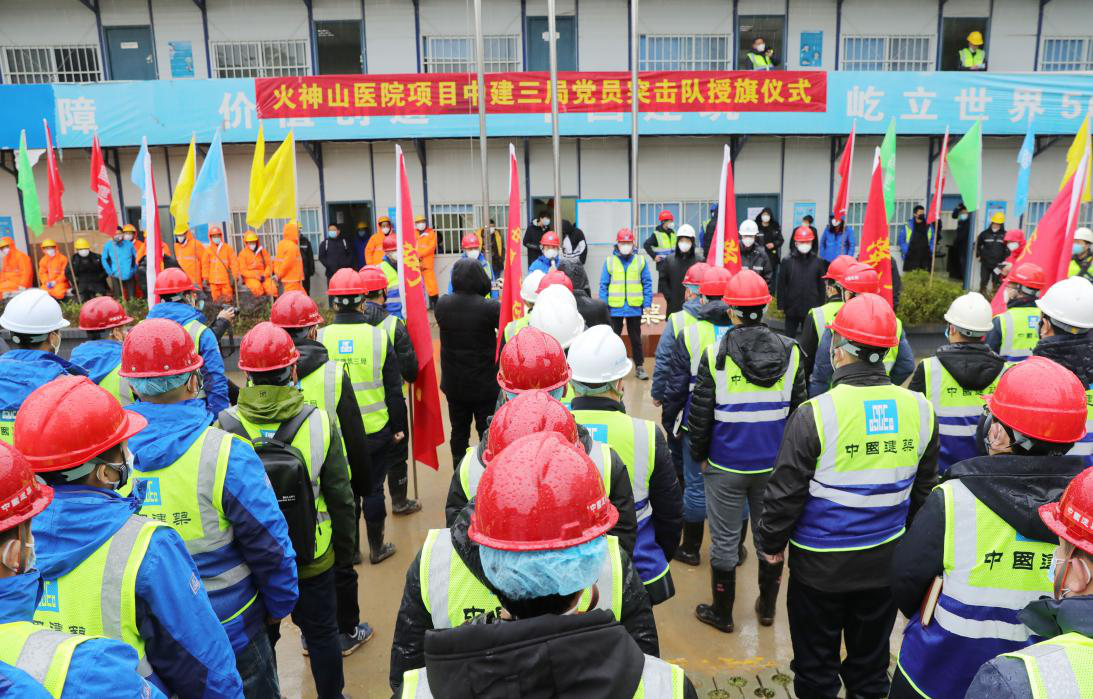 中建三(san)局(ju)黨委(wei)分別于1月25日(ri)和(he)28日(ri)成立(li)火(huo)神山醫(yi)院項目、雷神山項目現場指揮(hui)(hui)部臨時黨委(wei)和(he)多個(ge)臨時黨支部,為項目建設提供(gong)有力(li)保障。工程建設中,項目黨支部充分發揮(hui)(hui)戰(zhan)斗(dou)堡(bao)壘作用,組織成立(li)了14個(ge)黨員(yuan)突擊隊,廣(guang)大(da)黨員(yuan)同志身先士卒(zu)、主動請(qing)戰(zhan),團結(jie)帶領廣(guang)大(da)建設者無畏逆(ni)行,團結(jie)奮斗(dou),攻克一個(ge)又一個(ge)極限挑(tiao)戰(zhan)和(he)危難任務。真正將黨的組織力(li)量轉化為了攻堅(jian)克難的戰(zhan)斗(dou)力(li)量。