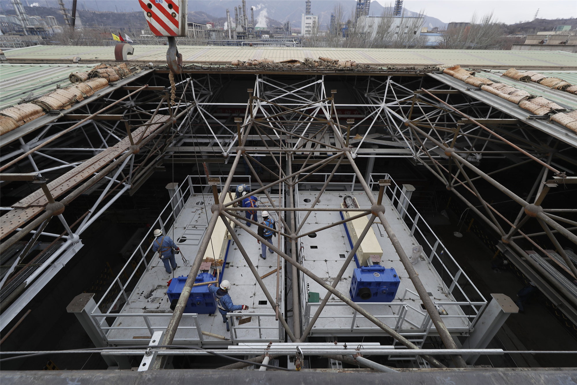 “非常(chang)時期,大家都很有干勁,沒有人(ren)抱怨。”戴(dai)述春說。2月29日凌晨,主廠房(fang)(fang)設(she)備(bei)基礎(chu)澆筑完成(cheng),順利轉入設(she)備(bei)安裝階段(duan)。成(cheng)套設(she)備(bei)廠房(fang)(fang)內,地(di)下有管(guan)道作業(ye),地(di)面有土建作業(ye),平臺(tai)上有大型設(she)備(bei)安裝,空中進行著跨地(di)塊吊裝,桁架上還進行防腐(fu)和內裝修施工,600名(ming)參建人(ren)員(yuan)輪番上陣,工程(cheng)進展全(quan)程(cheng)受控。