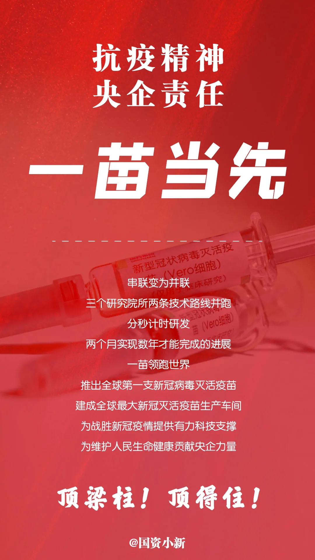 一苗當(dang)先,領(ling)先世(shi)界;兩山速(su)度(du),創造奇跡;三(san)不承(cheng)諾(nuo),保供穩價;五降擔當(dang),全力保障;百企(qi)轉產,硬核跨(kua)界;雙(shuang)鏈同穩,協同發展。數說央企(qi)抗疫精神,共同見(jian)證央企(qi)責任。