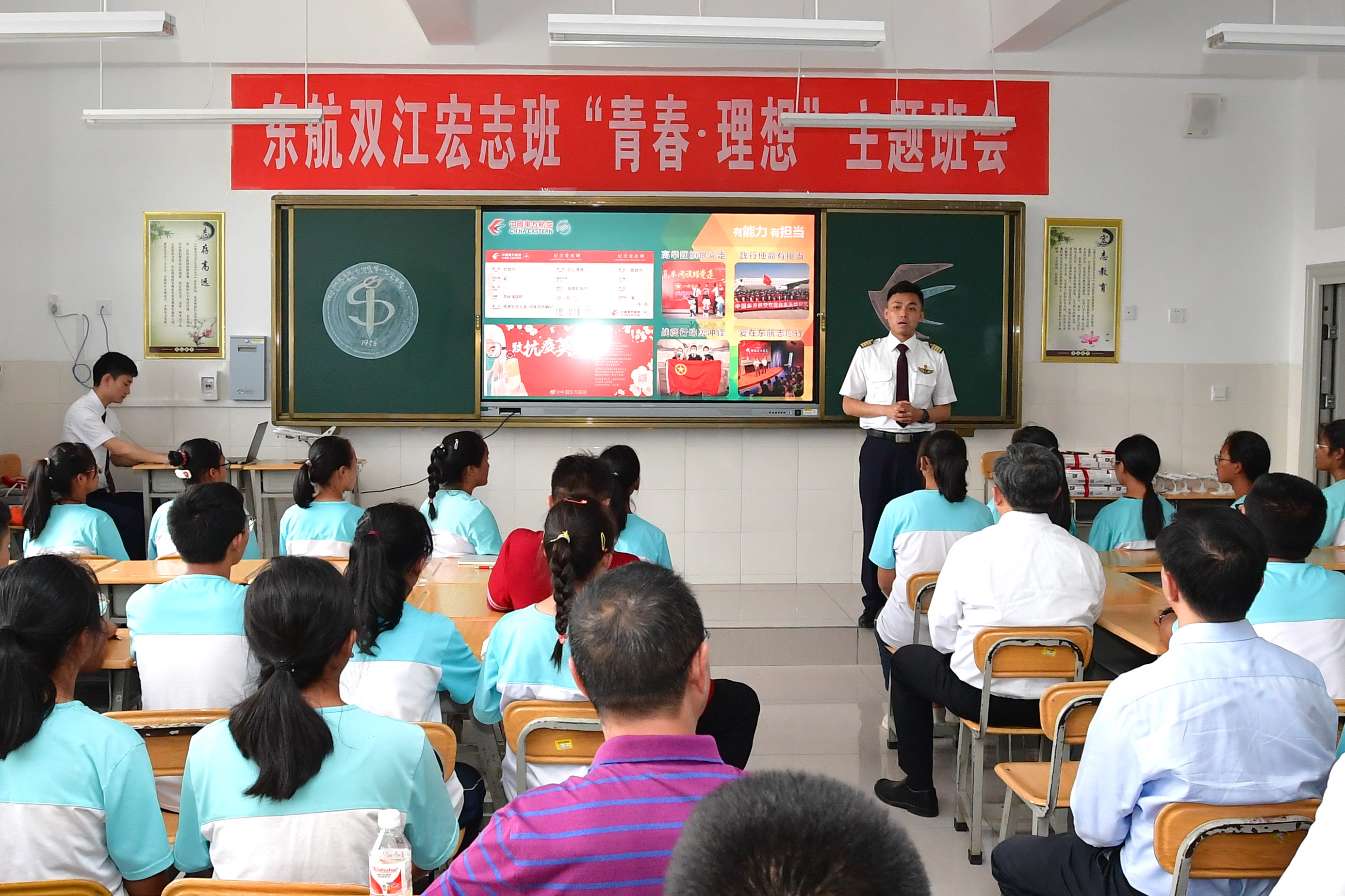 2020年5月15日,東航雙江宏志班開展“青春·理想”主題班會。東航青年飛行員上講臺分享追夢感悟。