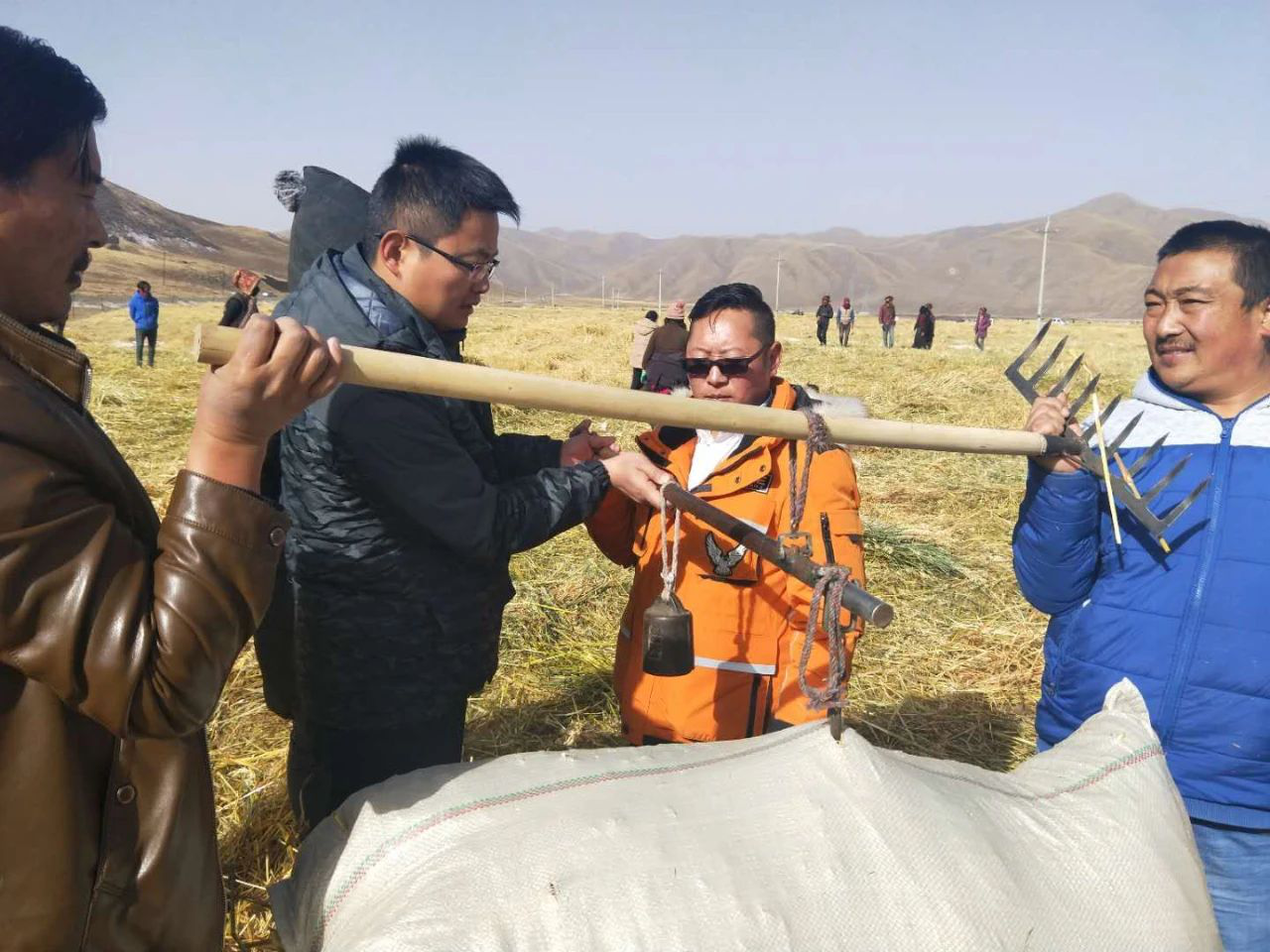 為了(le)激(ji)發牧(mu)(mu)(mu)民群(qun)(qun)眾(zhong)參與(yu)扶貧項目(mu)的(de)(de)(de)(de)(de)熱(re)情(qing),最(zui)大限(xian)度地(di)調(diao)動牧(mu)(mu)(mu)民群(qun)(qun)眾(zhong)的(de)(de)(de)(de)(de)勞(lao)動積極性,改(gai)變牧(mu)(mu)(mu)民群(qun)(qun)眾(zhong)“等、靠(kao)、要”思想,中(zhong)國(guo)普(pu)天在(zai)達日縣吉(ji)邁鎮龍才村援(yuan)建了(le)近千畝飼(si)(si)草(cao)(cao)(cao)示范基(ji)(ji)地(di),將黑土荒灘改(gai)造為綠(lv)草(cao)(cao)(cao)場。2018年在(zai)飼(si)(si)草(cao)(cao)(cao)收割(ge)(ge)前,楊柯磊向吉(ji)邁鎮提議,對飼(si)(si)草(cao)(cao)(cao)實(shi)行(xing)“以工代賑”的(de)(de)(de)(de)(de)收割(ge)(ge)模式。“以工代賑”即按照每名(ming)牧(mu)(mu)(mu)民“割(ge)(ge)多(duo)少,分(fen)多(duo)少”的(de)(de)(de)(de)(de)原則進行(xing)收割(ge)(ge),由(you)吉(ji)邁鎮全部建檔立卡(ka)戶自愿參與(yu)收割(ge)(ge),每戶收割(ge)(ge)的(de)(de)(de)(de)(de)飼(si)(si)草(cao)(cao)(cao)過(guo)稱登記后,作為勞(lao)動所得由(you)參與(yu)收割(ge)(ge)的(de)(de)(de)(de)(de)群(qun)(qun)眾(zhong)帶走自用。每戶牧(mu)(mu)(mu)民多(duo)勞(lao)多(duo)得,少勞(lao)少得,不(bu)勞(lao)不(bu)得。牧(mu)(mu)(mu)民群(qun)(qun)眾(zhong)的(de)(de)(de)(de)(de)勞(lao)動熱(re)情(qing)被前所未有(you)(you)地(di)調(diao)動起來,僅三天時間就收割(ge)(ge)下300畝左右的(de)(de)(de)(de)(de)面積。群(qun)(qun)眾(zhong)絲毫不(bu)舍得浪費,割(ge)(ge)過(guo)的(de)(de)(de)(de)(de)草(cao)(cao)(cao)地(di)又用耙子耙了(le)一遍,把剩下的(de)(de)(de)(de)(de)短茬(cha)也(ye)收集(ji)打包。有(you)(you)的(de)(de)(de)(de)(de)牧(mu)(mu)(mu)民群(qun)(qun)眾(zhong)甚至把帳篷都搬(ban)到飼(si)(si)草(cao)(cao)(cao)基(ji)(ji)地(di)旁(pang)邊住(zhu)下收割(ge)(ge),爭分(fen)奪秒(miao)。牧(mu)(mu)(mu)民們(men)高興地(di)說:“今年牦牛(niu)的(de)(de)(de)(de)(de)越冬(dong)飼(si)(si)草(cao)(cao)(cao)不(bu)愁了(le)!牦牛(niu)不(bu)會挨餓受(shou)凍了(le)!”收獲飼(si)(si)草(cao)(cao)(cao)的(de)(de)(de)(de)(de)群(qun)(qun)眾(zhong),在(zai)寒冬(dong)缺草(cao)(cao)(cao)的(de)(de)(de)(de)(de)季節及時地(di)給牦牛(niu)補充飼(si)(si)草(cao)(cao)(cao),牦牛(niu)們(men)早早地(di)補了(le)膘(biao),在(zai)隨后到來的(de)(de)(de)(de)(de)雪災(zai)中(zhong),沒有(you)(you)再發生掉膘(biao)甚至死亡的(de)(de)(de)(de)(de)情(qing)況,牧(mu)(mu)(mu)民群(qun)(qun)眾(zhong)的(de)(de)(de)(de)(de)損(sun)失被降到了(le)最(zui)低。