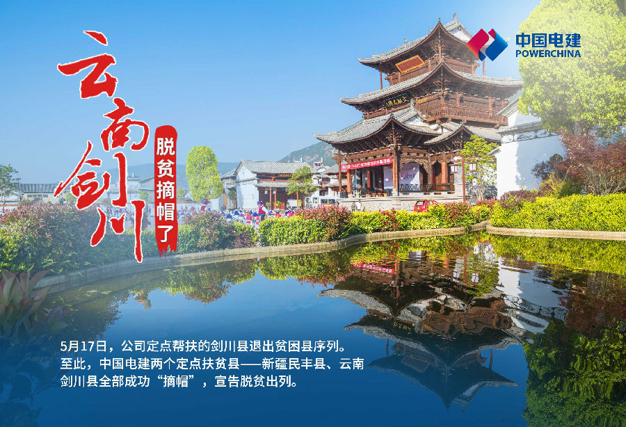 近日,經云南(nan)省人民政府批準,中(zhong)國電建(jian)定點(dian)幫扶(fu)的劍(jian)川縣(xian)退(tui)出(chu)貧(pin)困縣(xian)序列,正式脫(tuo)貧(pin)摘(zhai)帽(mao)。至此,中(zhong)國電建(jian)兩(liang)個定點(dian)扶(fu)貧(pin)縣(xian)——新疆民豐縣(xian)、云南(nan)劍(jian)川縣(xian)全部成功“摘(zhai)帽(mao)”,宣(xuan)告脫(tuo)貧(pin)出(chu)列。