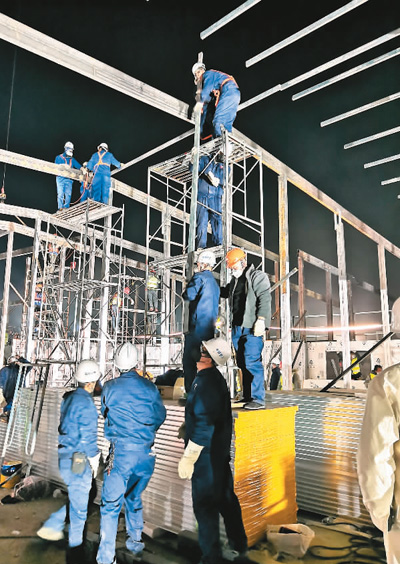 1月(yue)31日凌晨1時(shi)(shi),經(jing)過23個(ge)小(xiao)時(shi)(shi)不(bu)眠不(bu)休的(de)緊張施(shi)工,突擊隊終于提(ti)前1天完成(cheng)了19榀鋼桁架的(de)拼裝任務(wu)。