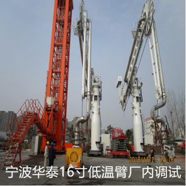 LNG卸料臂設計、制造和檢驗的主要難點在于材料深冷處理、旋轉接頭設計及低溫動態試驗、緊急脫離裝置設計及可靠性、快速連接接頭可靠性。公司研發部門經過多年持續攻關,初步解決了LNG卸料臂技術難題,開展了旋轉接頭、緊急脫離系統、低液壓快速接頭等關鍵部件的設計、制造以及低溫試驗,完成16寸大型LNG卸料臂樣機的研制及樣機低溫脫離性能測試,關鍵部件取得第三方BV認證。并在智能化方面進行了進一步提升,配置有位置監控系統,記錄操作數據、對卸料臂的運行情況進行實時跟蹤,超限報警,達到安全運行的目的。