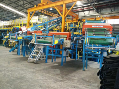 【技術產品簡介】為滿足國內外輪胎企業對于高性能子午線輪胎生產設備的需求,我司研發出五復合橡膠擠出機組,該設備可實現五種膠料的機內復合擠出,填補了國內空白,技術水平達到了國際先進水平。我公司以節能、降本、高效為設計思想對機組實現最優設計,滿足了擠出帶導電膠及非對稱胎面多層布置的半制品特殊工藝要求,從而提高了高端子午線輪胎的產品質量和穩定性;同時還研發及應用了“推出”式擠出成型技術、PVD螺桿技術、導電膠連續擠出在線監測技術、三級速度閉環控制技術、自動拾取胎面技術等等先進技術,進而保證該機組的技術領先性,為生產高端子午線輪胎半制品提供最佳擠出裝備,大幅提高輪胎生產企業的技術水平,促進輪胎產業轉型升級。