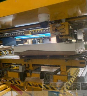 采用真空垛板機,啟停式控制,實現帶材無擦傷垛板,真空皮帶分段控制,減小皮帶傳動功率近60%,真空吸附采用追蹤式控制,有效減少真空發生器容量約為原來的1/3及減小噪聲。