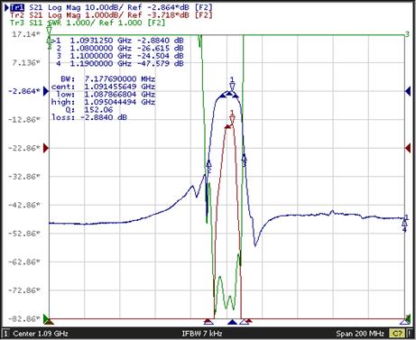 圖(tu)4極(ji)窄(zhai)帶濾波器實測曲(qu)線