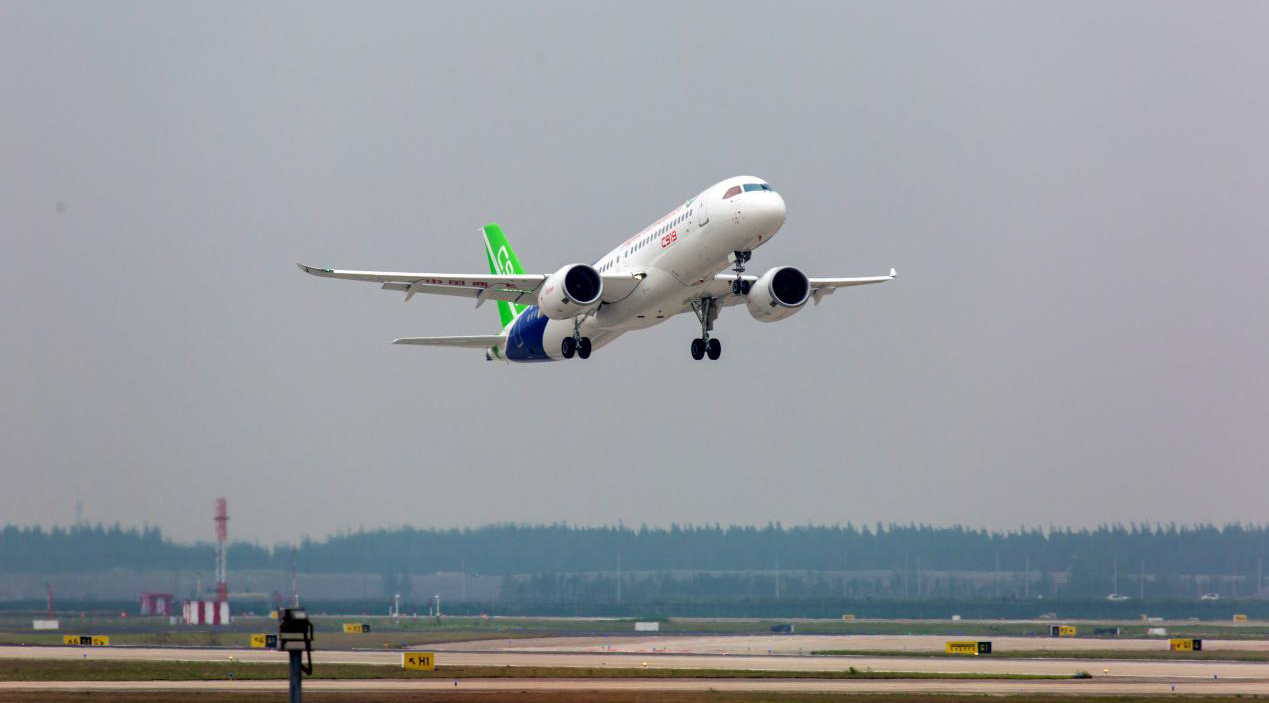 2017年(nian)5月5日(ri),我國自(zi)(zi)主研(yan)制的(de)第一款大型客(ke)(ke)機(ji)(ji)C919成功首飛。C919大型客(ke)(ke)機(ji)(ji)是(shi)我國按照國際(ji)民(min)航規章自(zi)(zi)行研(yan)制、具(ju)有自(zi)(zi)主知識產權(quan)的(de)大型噴氣式(shi)民(min)用飛機(ji)(ji),座級158-168座,航程(cheng)4075-5555公(gong)里。(來源:中(zhong)國商飛)