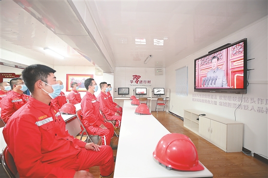 7時(shi)20分,遼(liao)河(he)油田3000余名(ming)(ming)干部(bu)(bu)員(yuan)(yuan)(yuan)(yuan)工(gong)(gong)(gong)(gong)齊(qi)聚(ju)機關(guan)大樓門(men)前(qian)廣場,唱響(xiang)《唱支(zhi)山歌給黨(dang)聽》,并組織6萬余名(ming)(ming)干部(bu)(bu)員(yuan)(yuan)(yuan)(yuan)工(gong)(gong)(gong)(gong)通(tong)(tong)(tong)過(guo)廣播、電(dian)視、手機等形式收(shou)聽收(shou)看大會盛況。上(shang)海銷售(shou)在(zai)機關(guan)設立(li)主會場,17家分公司(si)、直(zhi)管(guan)股權(quan)企業(ye)、160座加(jia)油站在(zai)安(an)排(pai)好生(sheng)產(chan)經營工(gong)(gong)(gong)(gong)作的同時(shi),分別組織集(ji)(ji)中觀看,共809名(ming)(ming)黨(dang)員(yuan)(yuan)(yuan)(yuan)干部(bu)(bu)和員(yuan)(yuan)(yuan)(yuan)工(gong)(gong)(gong)(gong)收(shou)看了盛會。在(zai)廣東石化煉化一體化項目現場,建(jian)設單(dan)位寰(huan)球公司(si)的1060名(ming)(ming)干部(bu)(bu)員(yuan)(yuan)(yuan)(yuan)工(gong)(gong)(gong)(gong)利用工(gong)(gong)(gong)(gong)休時(shi)間,通(tong)(tong)(tong)過(guo)手機認真聆聽習近平(ping)總書記(ji)講話。在(zai)塔克(ke)拉瑪干沙漠邊(bian)緣(yuan)英(ying)買470-H6井(jing)駐守的川慶鉆探(tan)新疆分公司(si)70598隊黨(dang)員(yuan)(yuan)(yuan)(yuan),克(ke)服時(shi)差早(zao)早(zao)起來,通(tong)(tong)(tong)過(guo)電(dian)視集(ji)(ji)體觀看直(zhi)播。安(an)全環(huan)保院(yuan)QZ管(guan)道環(huan)境監理項目部(bu)(bu)員(yuan)(yuan)(yuan)(yuan)工(gong)(gong)(gong)(gong)在(zai)海拔4700多米的施(shi)工(gong)(gong)(gong)(gong)現場,通(tong)(tong)(tong)過(guo)電(dian)腦收(shou)看盛況。工(gong)(gong)(gong)(gong)程技術研究院(yuan)黨(dang)員(yuan)(yuan)(yuan)(yuan)群(qun)眾千(qian)余人分別在(zai)北京、武漢、荊州三地,通(tong)(tong)(tong)過(guo)學習強國、鐵人先鋒APP等平(ping)臺(tai)觀看直(zhi)播。
