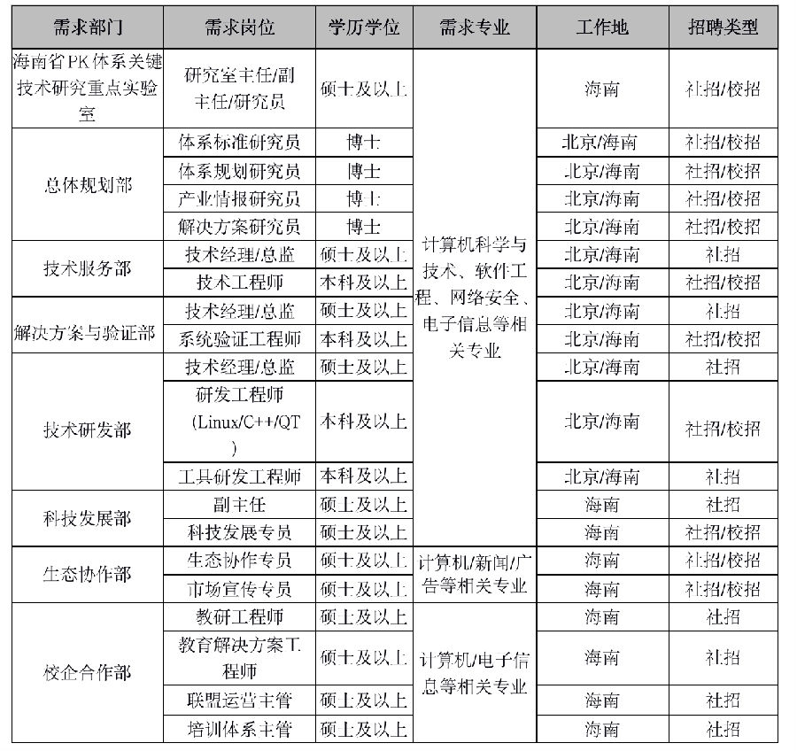 中(zhong)(zhong)電(海(hai)南)聯(lian)合創新(xin)研(yan)(yan)究院(yuan)有限公司(簡稱中(zhong)(zhong)電創新(xin)院(yuan))成立于2019年(nian)9月(yue),位于海(hai)南自(zi)由貿易港(gang)生(sheng)態軟(ruan)件(jian)園,是(shi)中(zhong)(zhong)國(guo)電子信息產業(ye)(ye)(ye)集團(簡稱中(zhong)(zhong)國(guo)電子)直屬企業(ye)(ye)(ye)和中(zhong)(zhong)國(guo)電子網信產業(ye)(ye)(ye)技(ji)術(shu)創新(xin)的(de)重(zhong)(zhong)要載體(ti)。2022年(nian)通(tong)過高新(xin)技(ji)術(shu)企業(ye)(ye)(ye)認定,并納入國(guo)務院(yuan)國(guo)資委科改示范企業(ye)(ye)(ye),擁有海(hai)南省PK體(ti)系(xi)(xi)關(guan)鍵技(ji)術(shu)研(yan)(yan)究重(zhong)(zhong)點實驗室,主要負責PKS體(ti)系(xi)(xi)技(ji)術(shu)研(yan)(yan)發及應用【PKS體(ti)系(xi)(xi)指基于自(zi)主的(de)飛騰(Phytium)中(zhong)(zhong)央處理器(CPU)和麒(qi)麟(Kylin)操作(zuo)系(xi)(xi)統(OS),具有雙體(ti)系(xi)(xi)防護結(jie)構,具備內生(sheng)內置安全能(neng)力(li)的(de)架(jia)構體(ti)系(xi)(xi)】,牽頭PKS體(ti)系(xi)(xi)規劃論(lun)證、組織開(kai)展PKS體(ti)系(xi)(xi)產業(ye)(ye)(ye)生(sheng)態建設(she)、解決(jue)PKS體(ti)系(xi)(xi)重(zhong)(zhong)大工程問(wen)題。通(tong)過開(kai)展與區塊鏈(lian)、大數據、人工智能(neng)等前沿技(ji)術(shu)融合創新(xin),實現(xian)PKS體(ti)系(xi)(xi)技(ji)術(shu)創新(xin),引領網信產業(ye)(ye)(ye)升級。
