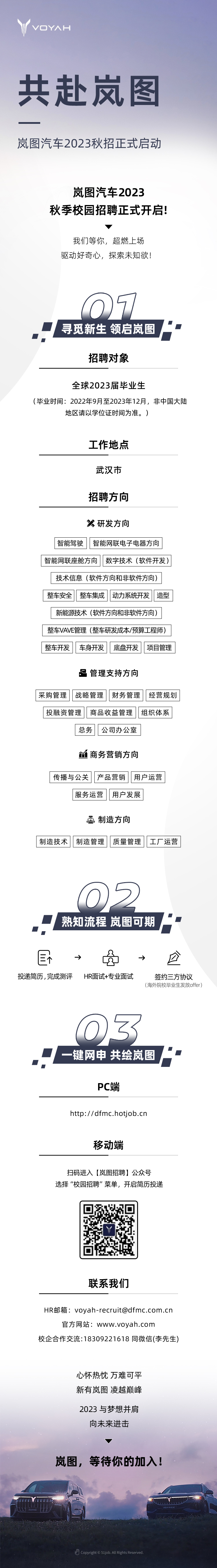 東風汽車所屬嵐圖汽車2023秋招正式啟動