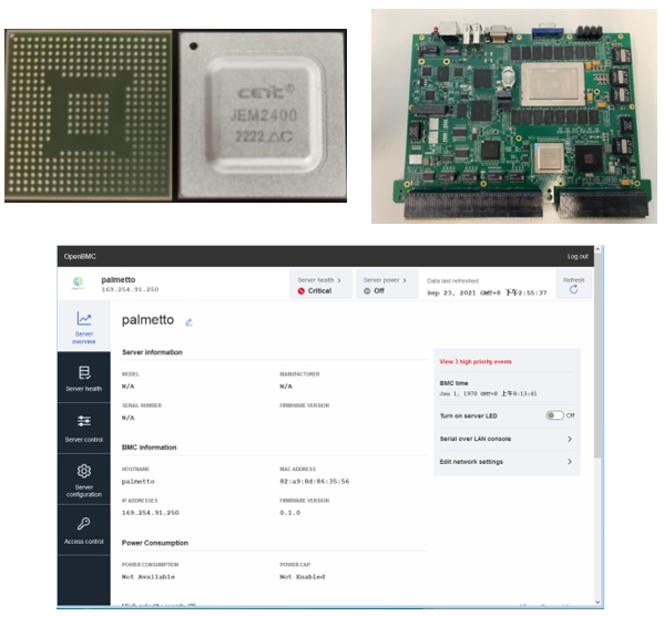 中(zhong)電科32所開發的EM2400型(xing)BMC控制器原型(xing)可運(yun)行BMC固件。BMC固件基于(yu)OpenBMC軟件定制修改而來,支持(chi)IPMI協議,實現(xian)對服務器板級(ji)(ji)傳感信息(xi)的采集、KVM等(deng)服務器板級(ji)(ji)智(zhi)能(neng)管(guan)理(li)功能(neng)。 技術(shu)成熟度5級(ji)(ji)。